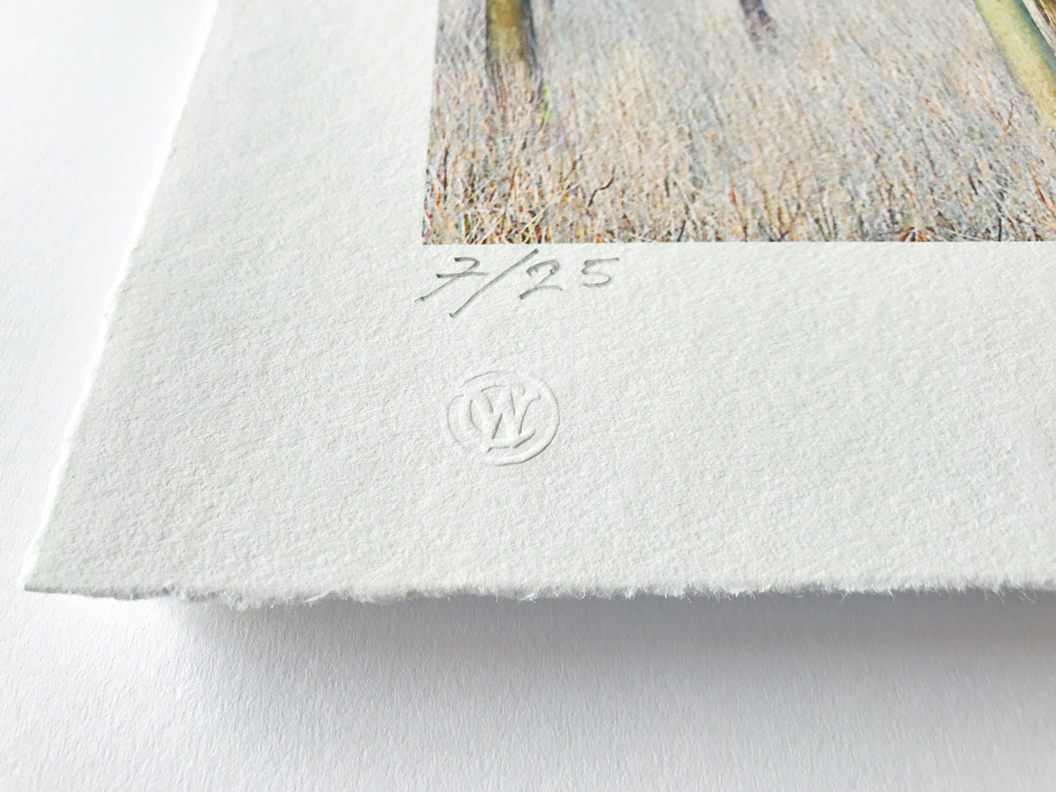 Artists and collectors are naturally keen to ensure authenticity and many artists have their own blind stamp – a colourless impression that is embossed without ink onto a print, which allows collectors to trace the work back to the artist’s studio. Blind stamps are usually quite unobtrusive and positioned below the photograph alongside the limited edition number.