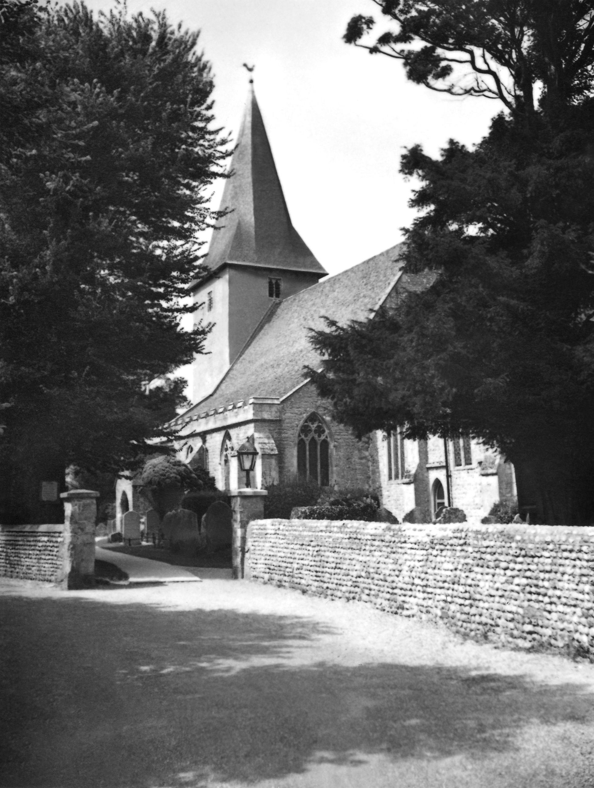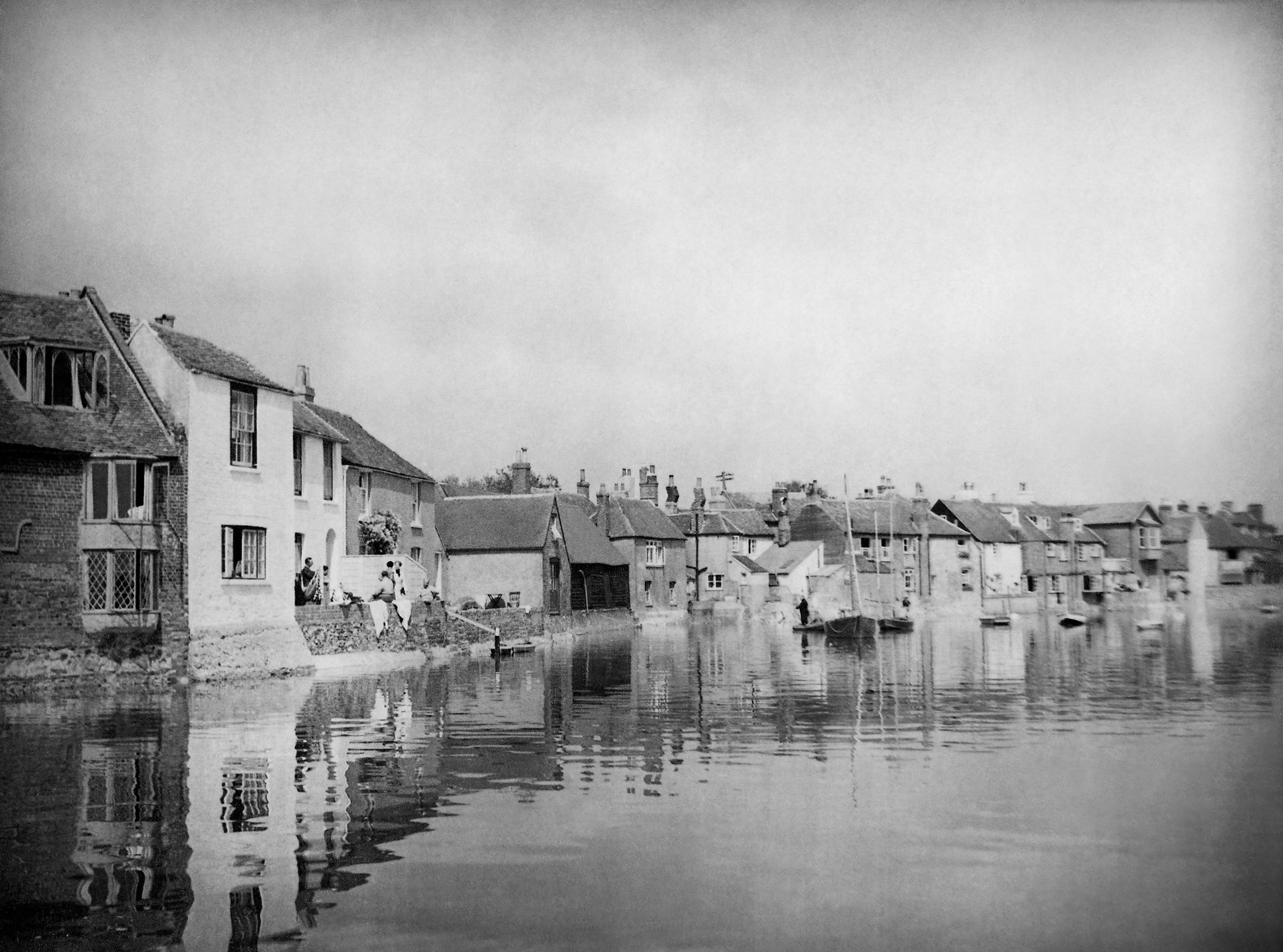 A fascinating and rare set of photographs of Bosham in 1938, by Sir Kenneth Younger. The newsstand outside the Post Office on the High Street reads 'Eden's Future', a young cricketer is captured rowing up to a car caught out by the high tide, and locals are seen sitting on the wall along the foreshore enjoying the August sunshine, almost exactly one year before the outbreak of World War II.