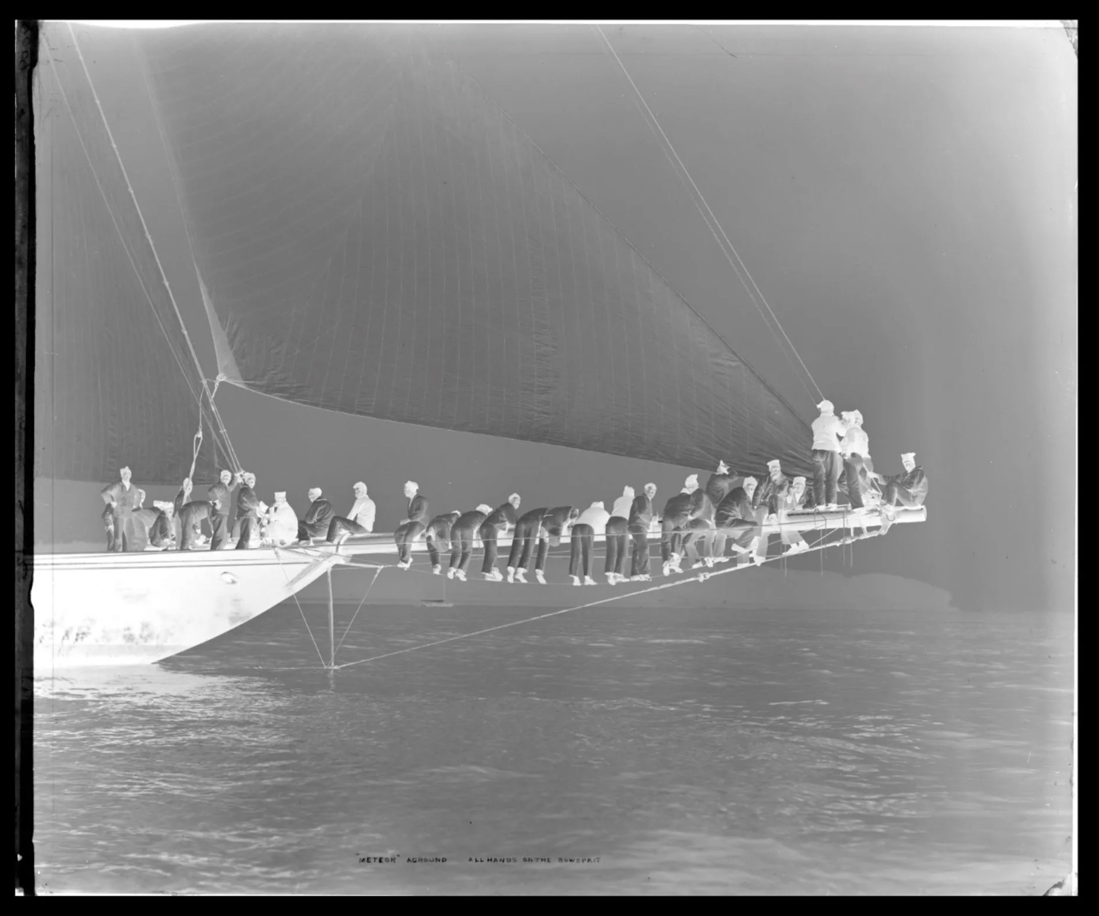In order to make silver gelatin photographs today using the original glass plate negatives in the Beken of Cowes archive, which are over 130 years old, first the glass plate negatives needed to be cleaned and then scanned to produce a digital file. Here's how the arduous task of digitally restoring the Beken of Cowes photographs was completed by Paul Brett in 2015, by way of an example using Alfred John West's iconic photograph of Meteor II Aground in 1899.