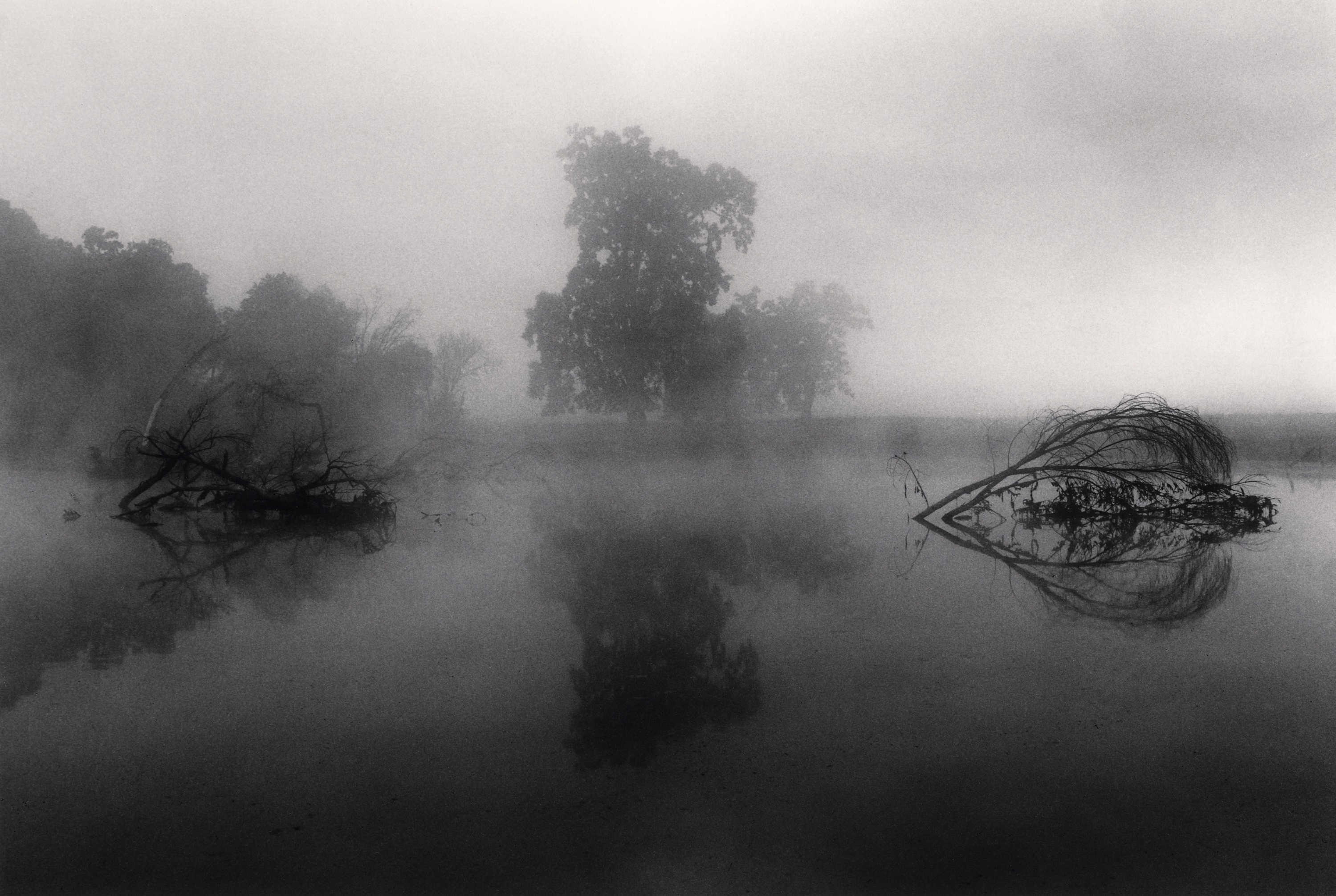 A good example of the principle of retouching is the image Reflection, Big Sur, California, USA. 1979. The original negative is 4x5 inches and all resulting prints are covered in white dust specks. My fault entirely, as I had just purchased the Graflex Speed folding camera and in my enthusiasm did not even think to clean the film dark slides before use. The result is 3+ hours of hand retouching on every print.” Michael Kenna